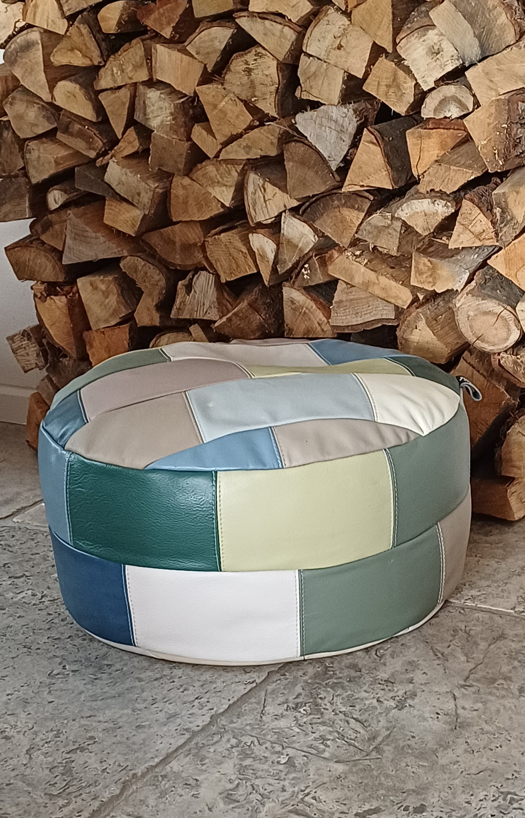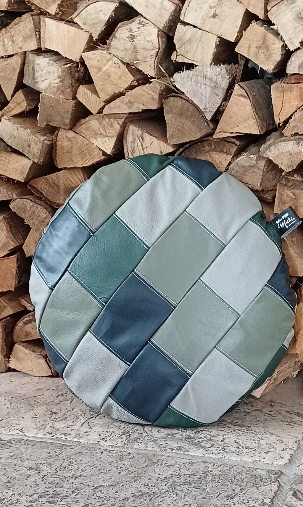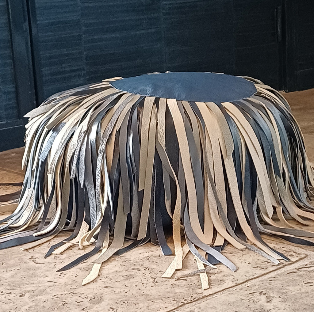 De restanten leer uit de meubel- schoenen- of tassenindustrie verwerk ik tot exclusieve woonmode. Door het recyclen van kleine stukken leer is elk kussen, elke poef of zitzak uniek.